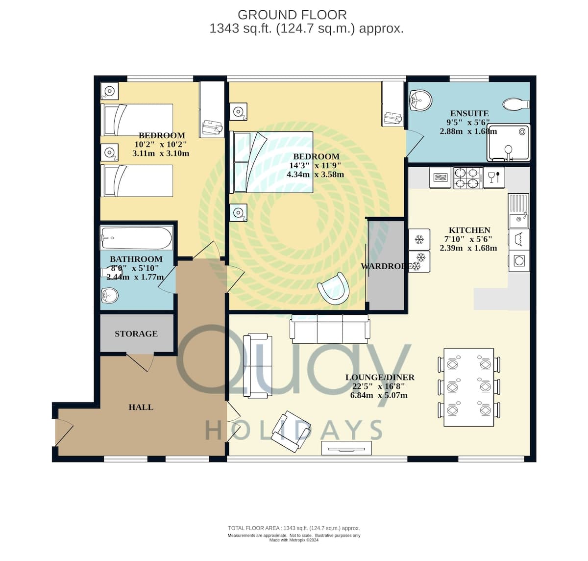 Services – Duvets and linen provided including bath and beach towels. Gas central heating. Hairdryers.