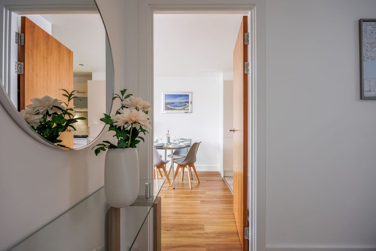 Located in the town centre and just minutes away from Poole Quay! This stylish fourth floor, one bedroom, one bathroom apartment is ideally situated just a few minutes away from a variety of wonderful restaurants, cafes and bars, a five-minute walk to the main shopping centre, and only a minute’s stroll to the Quay and its vibrant activities. This contemporary apartment features elegant furniture and high-quality fittings.
