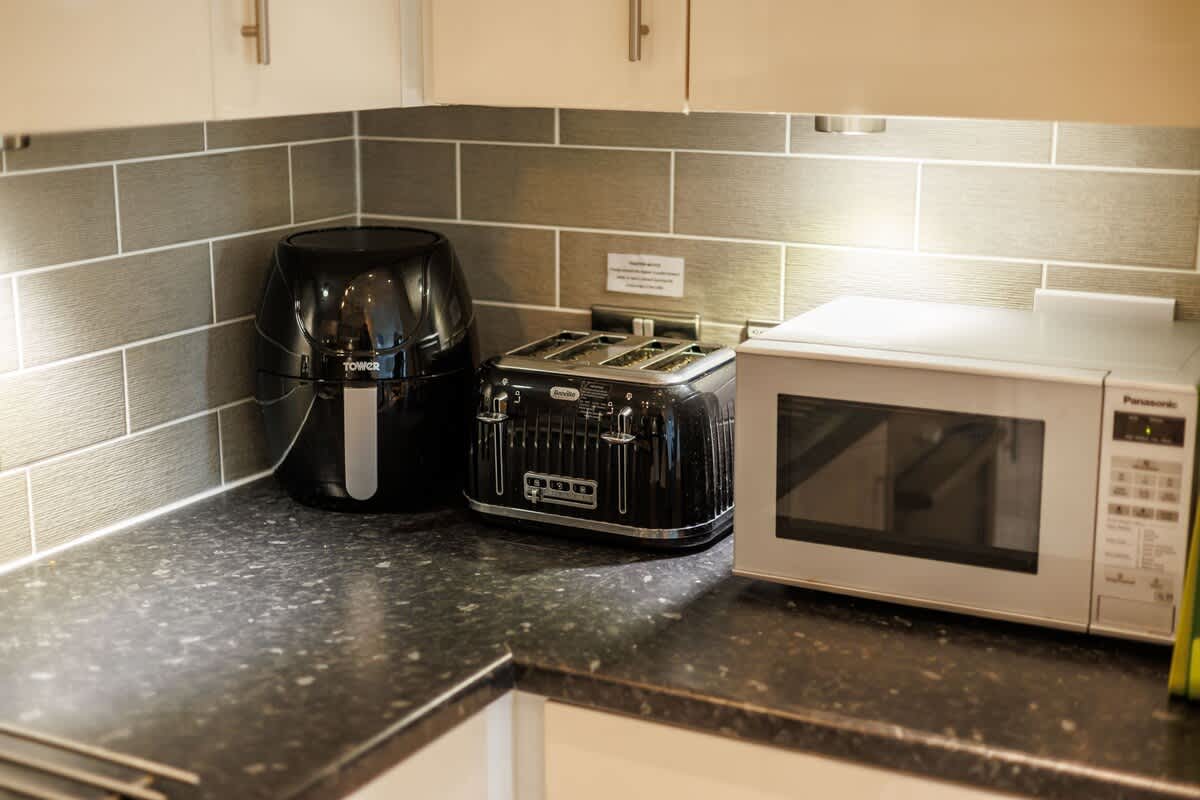 Kitchen – Dishwasher, electric oven, induction hob, fridge, freezer, microwave, washer / dryer, Nespresso Coffee Machine and Tower Air Fryer.